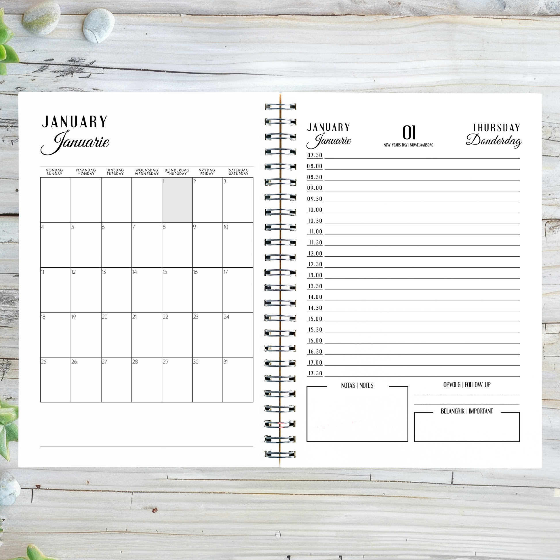 BUSINESS DAIRY 2026 - 1 DAY ON A PAGE _ This 1 DAY business planner has is the best for planning your heavy schedule. Called a Business planner, but it can be used by anyone needing a bit more space to write down your important information.