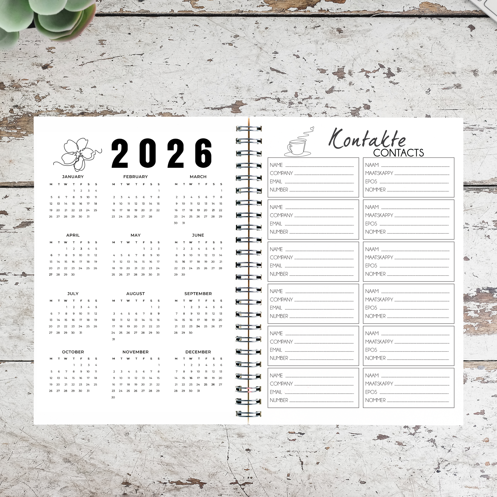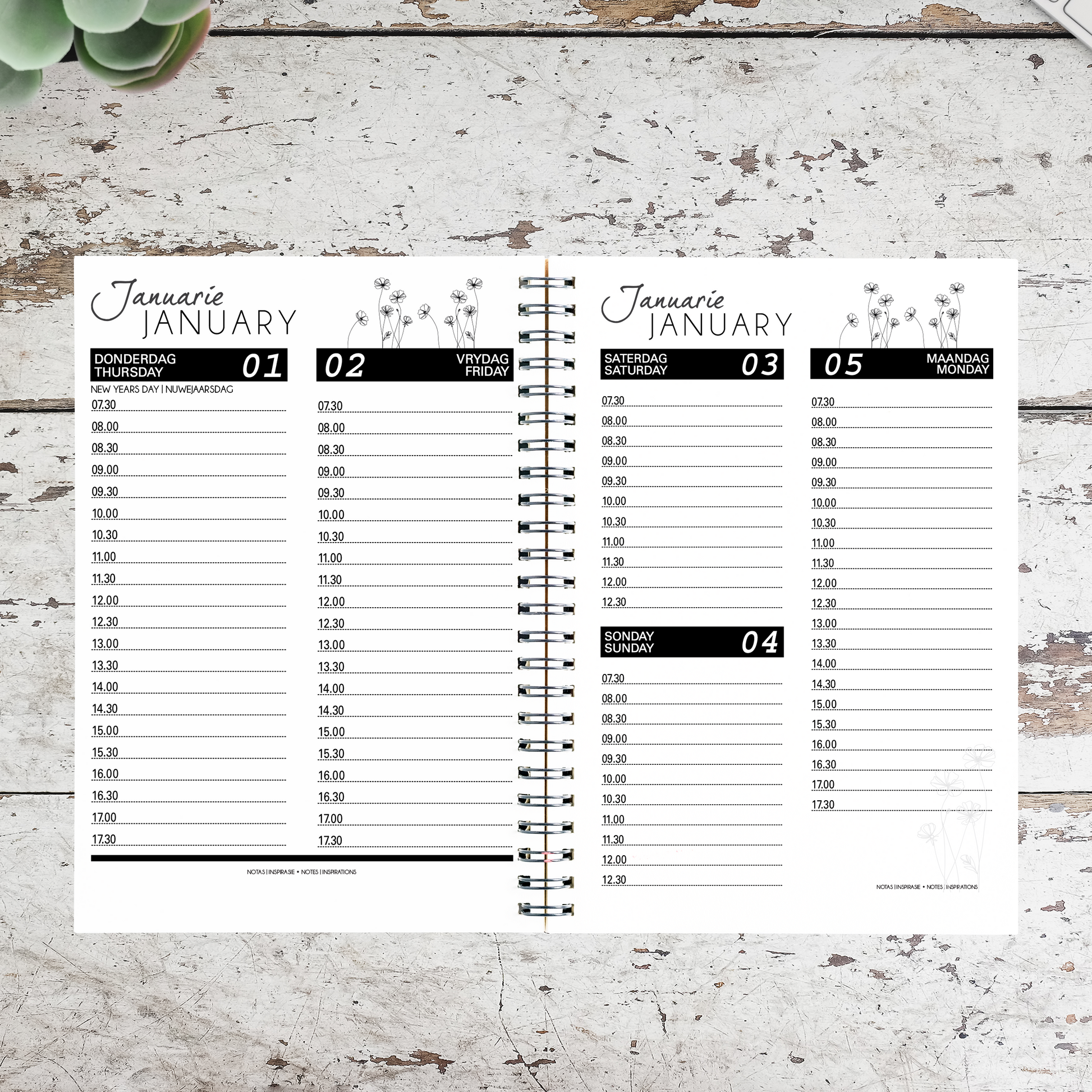 ALL ROUND DAIRY 2026 - 2 DAYS ON A PAGE _ This 2 DAY journal has been thoughtfully created with you in mind. It serves not just as a tool, but as a beautifully designed companion to help you navigate your daily journey. Stay organized, cherish each moment, and feel empowered while embracing your beauty and control over your hectic days. More than just a diary, it’s your key to elegantly mastering the chaos of life.