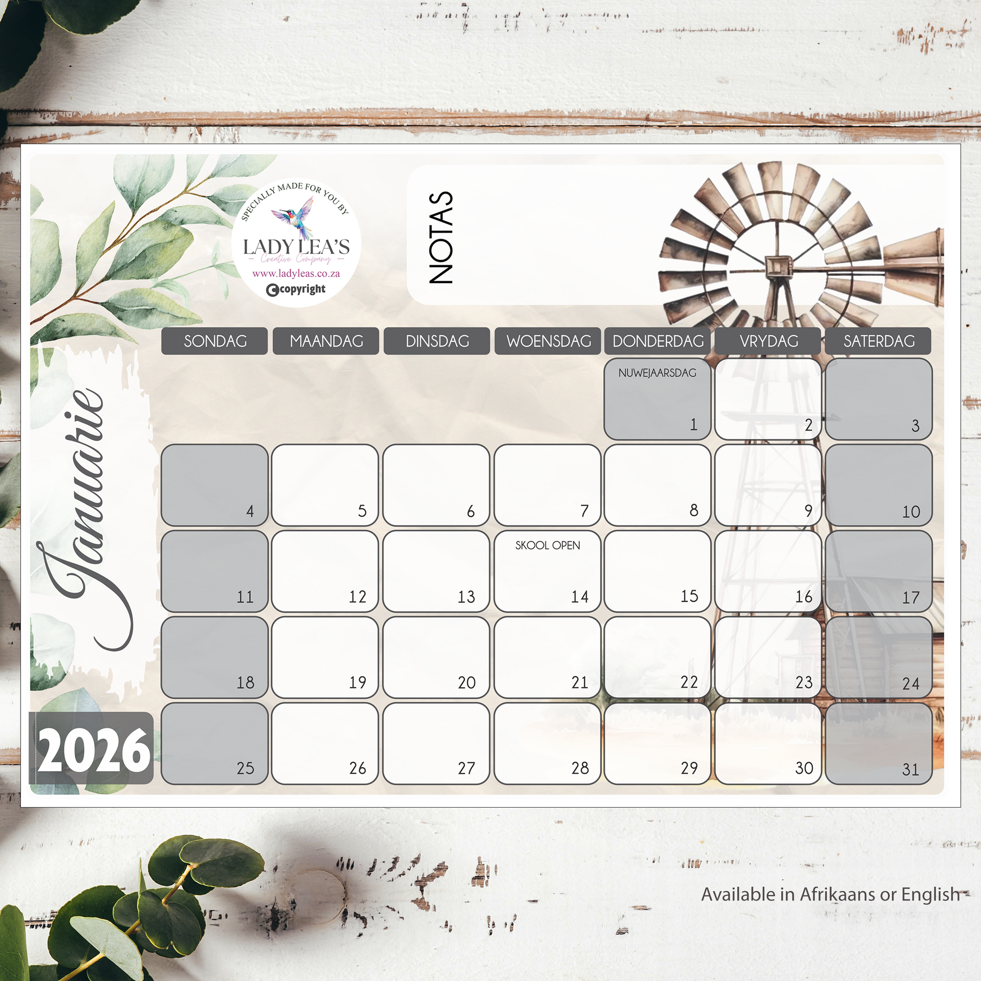 • Available in both Afrikaans and English to suit your preferences.